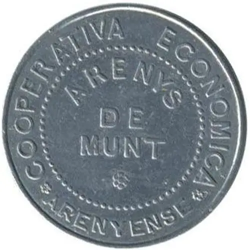 | Obverse lettering | COOPERATIVA ECONOMICA ARENYS DE MUNT ✿ ✿ ARENYENSE ✿ |