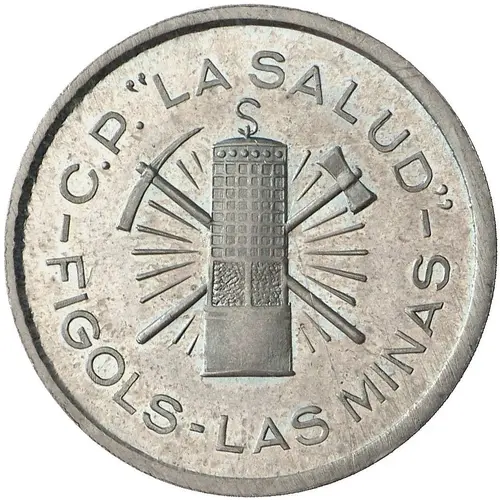 | Obverse lettering | C.P. `LA SALUD` - FIGOLS - LAS MINAS - (Translation: Popular Cooperative `La Salud` Figols - The mines) |