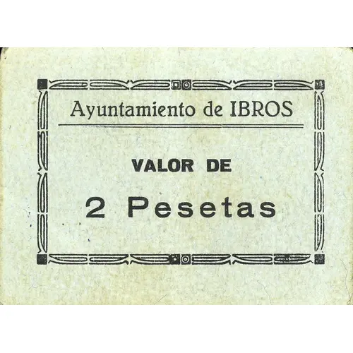 Ayuntamiento de IBROS VALOR DE 2 Pesetas (Translation: City Council of Ibros Value of 2 Pesetas) |