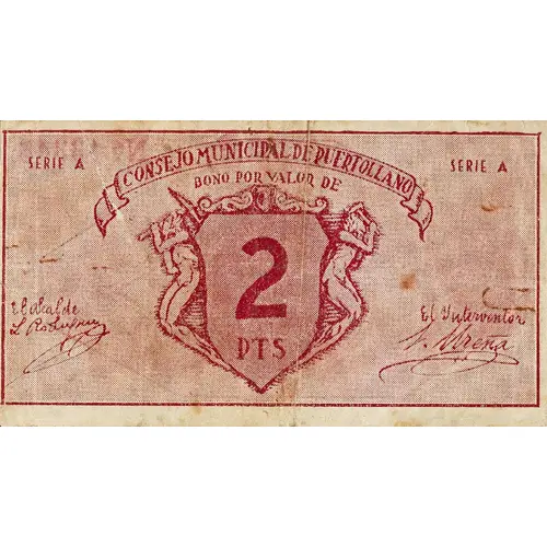 CONSEJO MUNICIPAL DE PUERTOLLANO BONO POR VALOR DE 2 PTS (Translation: Municipal Council of Puertollano Bond for a value of 2 Pesetas) |