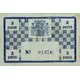 Blue banknote with wide line perimeter framing and squares geometric designs |