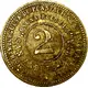 | Obverse description | Number 2 in center. Concentric circles with beads and two layers of legend. |