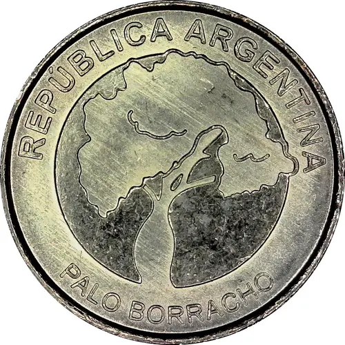 | Descrizione del rovescio | A synthesis of its flower to the left with the inscription `EN UNIÓN Y LIBERTAD` around the rim at the bottom, the date at the top, and the value in the upper right sector, in allusion to the Argentine northeast, whose forests are typical of the silk floss tree |