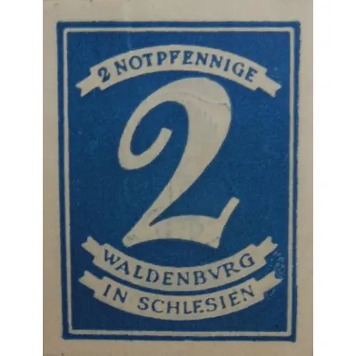 (Translation: 2 PFENNIGS OF NOTGELD WALDENBURG IN SILESIA)