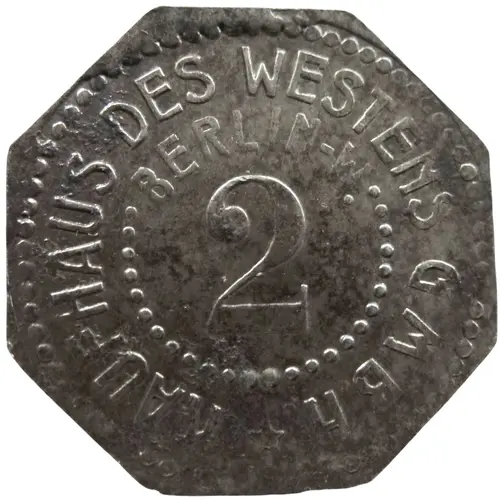 | Obverse lettering | KAUFHAUS DES WESTENS G•M•B•H• BERLIN-W 2 ★ |