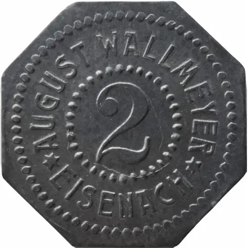 | Obverse lettering | AUGUST WALLMEYER 2 ✶ EISENACH ✶ |