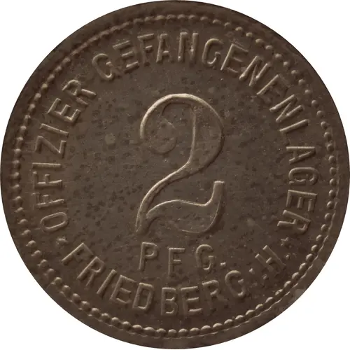 | Obverse lettering | OFFIZIER GEFANGENENLAGER 2 Pfg. ★ FRIEDBERG i.H. ★ |