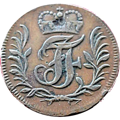 | Reverse lettering | II PFENNIG F.S.RUDOL STADT.L. MUNTZ 1761 |