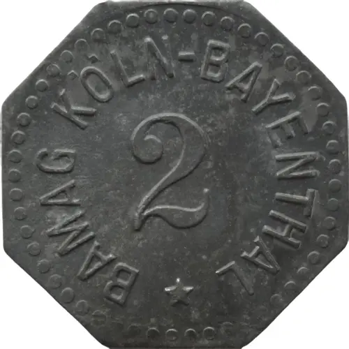 | Obverse lettering | BAMAG KÖLN-BAYENTHAL 2 ★ |