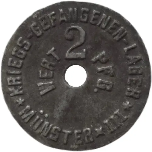 | Obverse lettering | KRIEGS-GEFANGENEN-LAGER WERT 2 PFG. ★ MÜNSTER III ★ |
