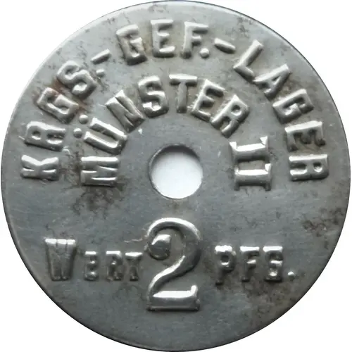 | Obverse lettering | KRGS.-GEF.-LAGER MÜNSTER II WERT 2 PFG. |