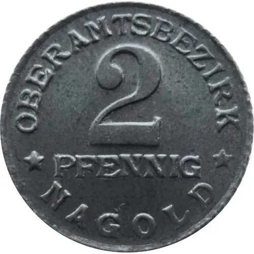 | Obverse lettering | OBERAMTSBEZIRK 2 PFENNIG ★ NAGOLD ★ |