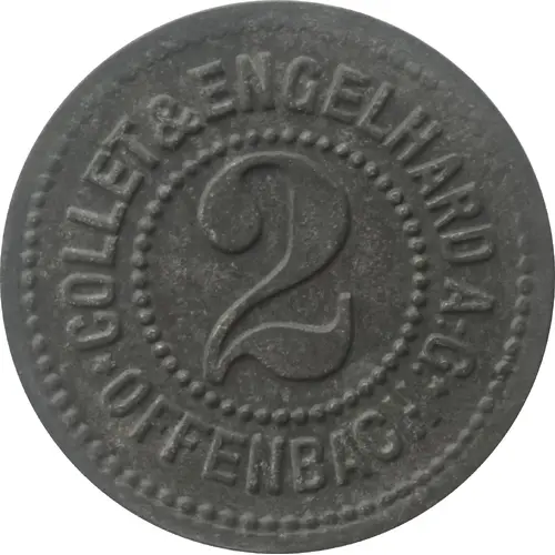 | Obverse lettering | COLLET & ENGELHARD A.-G. 2 ★ OFFENBACH ★ |