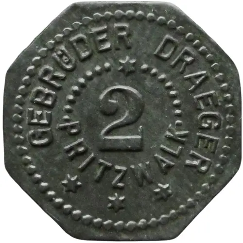 | Obverse lettering | GEBRÜDER DRAEGER ✶ 2 PRITZWALK ✶✶✶ |