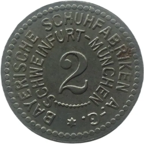 | Obverse lettering | BAYRISCHE SCHUHFABRIKEN A.-G. ✶ SCHWEINFURT-MÜNCHEN 2 |