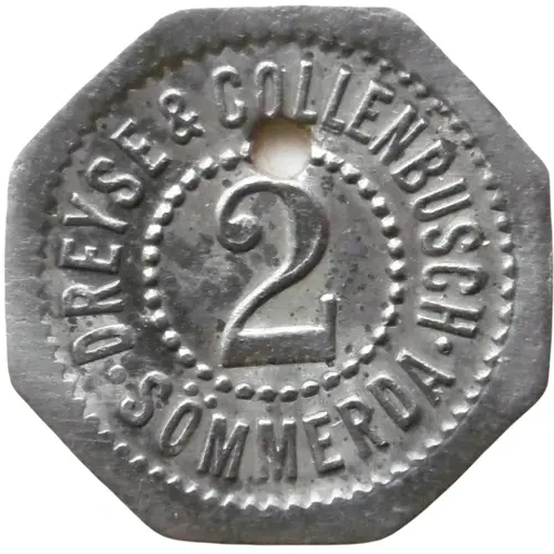| Obverse lettering | DREYSE & COLLENBUSCH 2 ● SÖMMERDA ● |