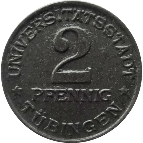 | Obverse lettering | UNIVERSITÄTSSTADT 2 PFENNIG ★ TÜBINGEN ★ |