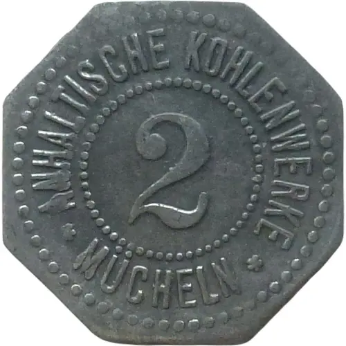 | Obverse lettering | ANHALTISCHE KOHLENWERKE 2 ✿ MÜCHELN ✿ |