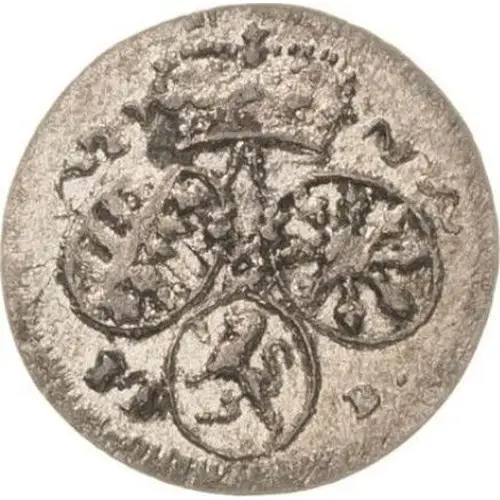| Obverse description | 3 small oval arms, crown above, mintmark below. |