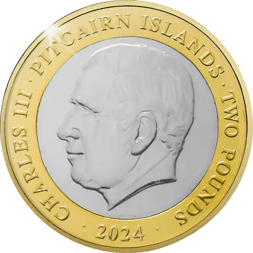 | 正面铭文 | CHARLES III PITCAIRN ISLANDS TWO POUNDS 2024 GD |