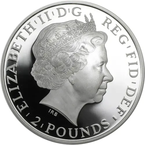| Obverse lettering | ELIZABETH ` II ` D ` G REG ` FID ` DEF IRB ` 2 POUNDS ` (Translation: Elizabeth the Second by the Grace of God Queen Defender of the Faith) |