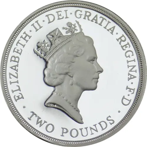| Obverse lettering | ELIZABETH·II·DEI·GRATIA·REGINA·F·D RDM · TWO POUNDS · (Translation: Elizabeth the Second by the Grace of God Queen Defender of the Faith) |