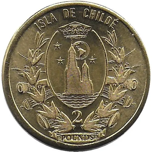 | Obverse lettering | ISLA DE CHILOÉ 2 POUNDS (Translation: Chiloé Island) |