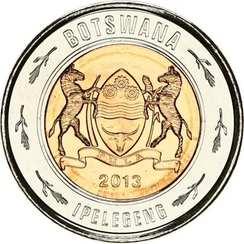 | Obverse lettering | BOTSWANA PULA 2013 IPELEGENG |