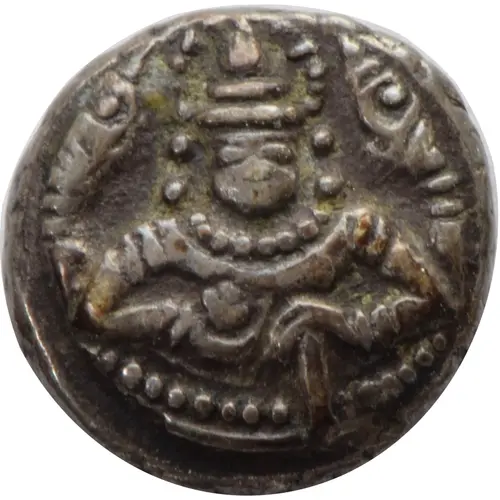 | Reverse description | Stylized figure of Goddess Kali, Conch shell within |