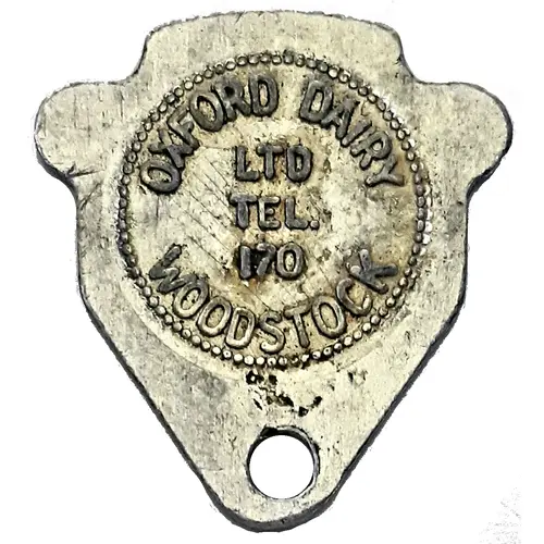 | Obverse lettering | Oxford Dairy Ltd Tel. 170 Woodstock |