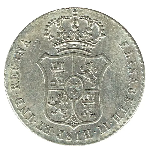 | Obverse lettering | ELISABETH.II.HISP.ET.IND.REGINA (Translation: Isabella II, queen of the Spains and Indias) |