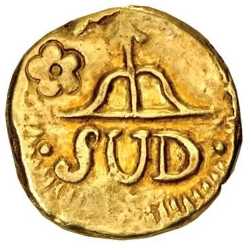 | Aversbeschreibung | SUD with bow and arrow above, five-leaved flower countermark. |