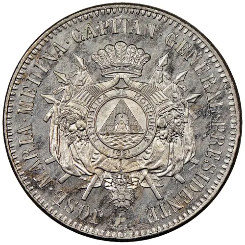 | Obverse lettering | TOSE MARIA MEDINA GENERAL PRESIDENTE REPUBLICA DE HONDURAS 1821 TASSET |