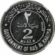 | Надписи аверса | ★ حُكُومَة رَأس الخَيْمَة ★ ٢ ريَالان 2 RIALS ASSAY GOVERNMENT OF RAS AL KHAIMA (Translation: Government of Ras al-Khaimah 2 Riyals Essai) |