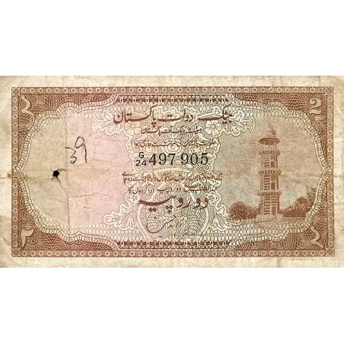 (Translation: State Bank of Pakistan Issued with guarantee of government of Pakistan Two Rupees)