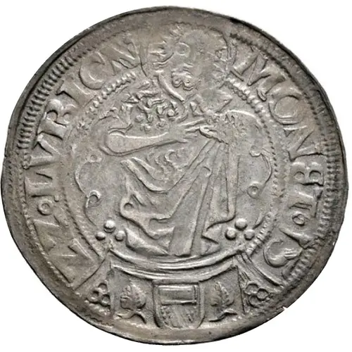 | Reverse description | Shielded city arms within decorated beaded circle superimposed over a cross with lilly ends. |
