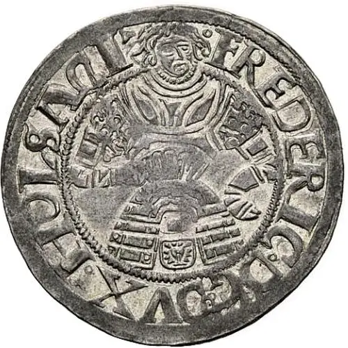 | Obverse description | Facing 3/4-length armored figure, small shield of Holstein arms below, titles of Friedrich I. |