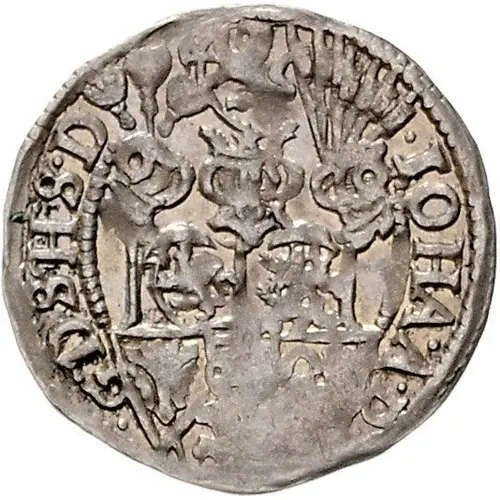 | Description de l’avers | 4-fold arms with central shield, 3 helmets above, titles of Johann Adolf in legend |