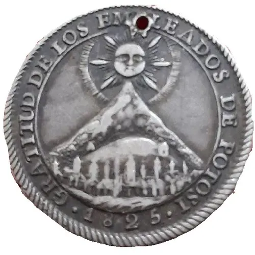 | Obverse lettering | GRATITUD DE LOS EMPLEADOS DE POTOSI 1825 |
