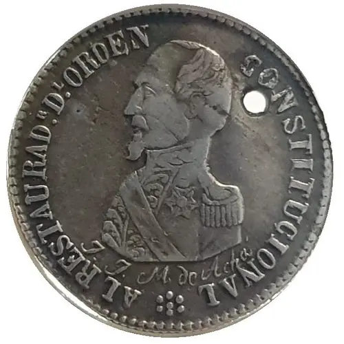 | Ön yüz lejandı | AL RESTAURADOR DEL ORDEN CONSTITUCIONAL J. J. M de Acha (Translation: To the restorer of the constitutional order José María de Achá) |