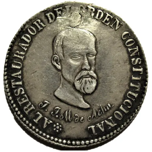(Translation: To the restorer of the constitutional order José María de Achá) |