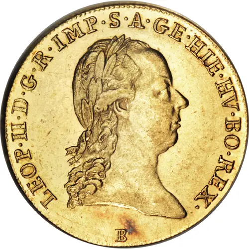 | Obverse lettering | LEOP · II · D · G · R · IMP · S · A · GE · HIE · HV · BO · REX (Translation: Leopold II, by God`s grace ever exalted Emperor of the Romans, King of Germany, Jerusalem, Hungary and Bohemia.) |
