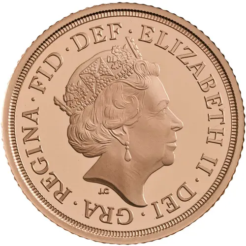St. George slaying the dragon right with date, engraver`s initials and sapphire coronation anniversary privy mark in exergue. |