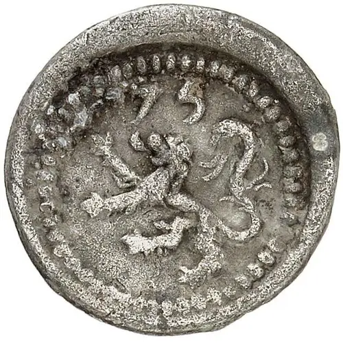 | Descrição do anverso | Rampant lion to the left within pearled circle, abbreviated year above |