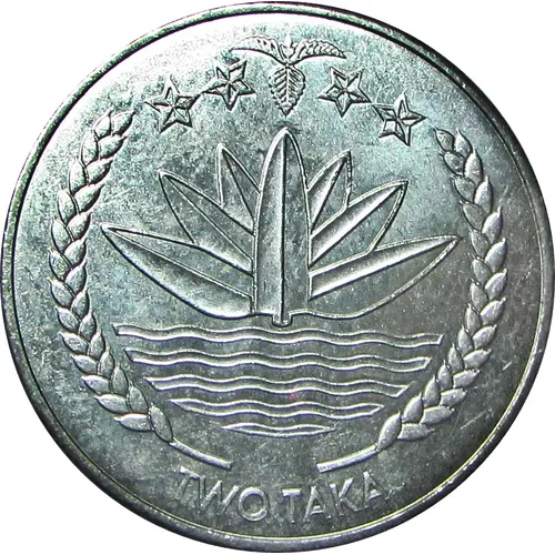 | Reverse lettering | গণপ্রজাতন্ত্রী বাংলাদেশ সরকার ২ 2 দুই টাকা 2010 BANGLADESH (Translation: Government of People`s Republic of Bangladesh 2 2 Two Taka 2010 Bangladesh) |