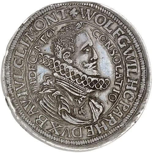 | Obverse lettering | WOLFG WILH C PA RHE DVX BAV IVL CLI MONT IN DEO MEO CONSOLATIO |
