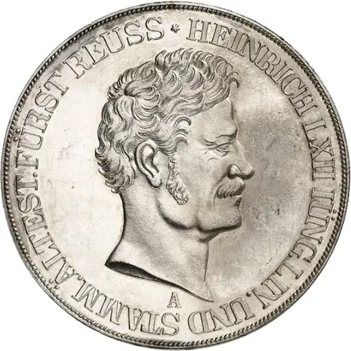 | Obverse lettering | HEINRICH LXII IÜNG.LIN. UND STAMM.ÄLTEST.FÜRST REUSS A |