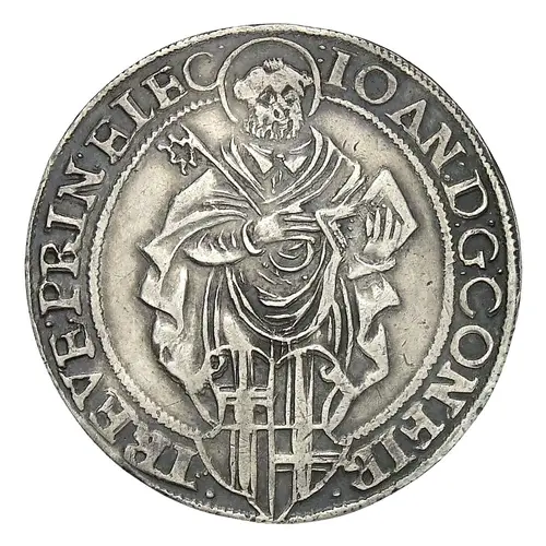 | Obverse description | Standing figure of St. Peter with book and key, shield of 4-fold arms of Trier and Leyen below in front, titles of Johann VI. |