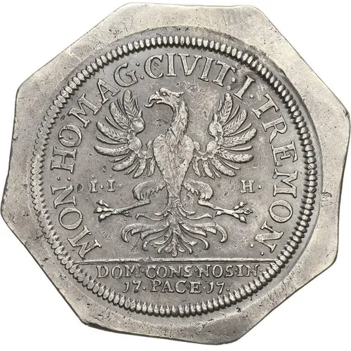 Opis líce MON : HOMAG : CIVIT : I • TREMON : I • I • H • DOM • CONS • NOS • IN • 17 • PACE • 17 •