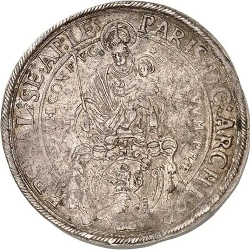 توضیحات روی سکه Madonna with child standing above coat of arms of the Archbishop.